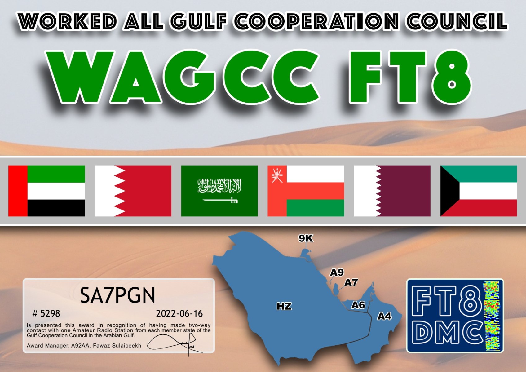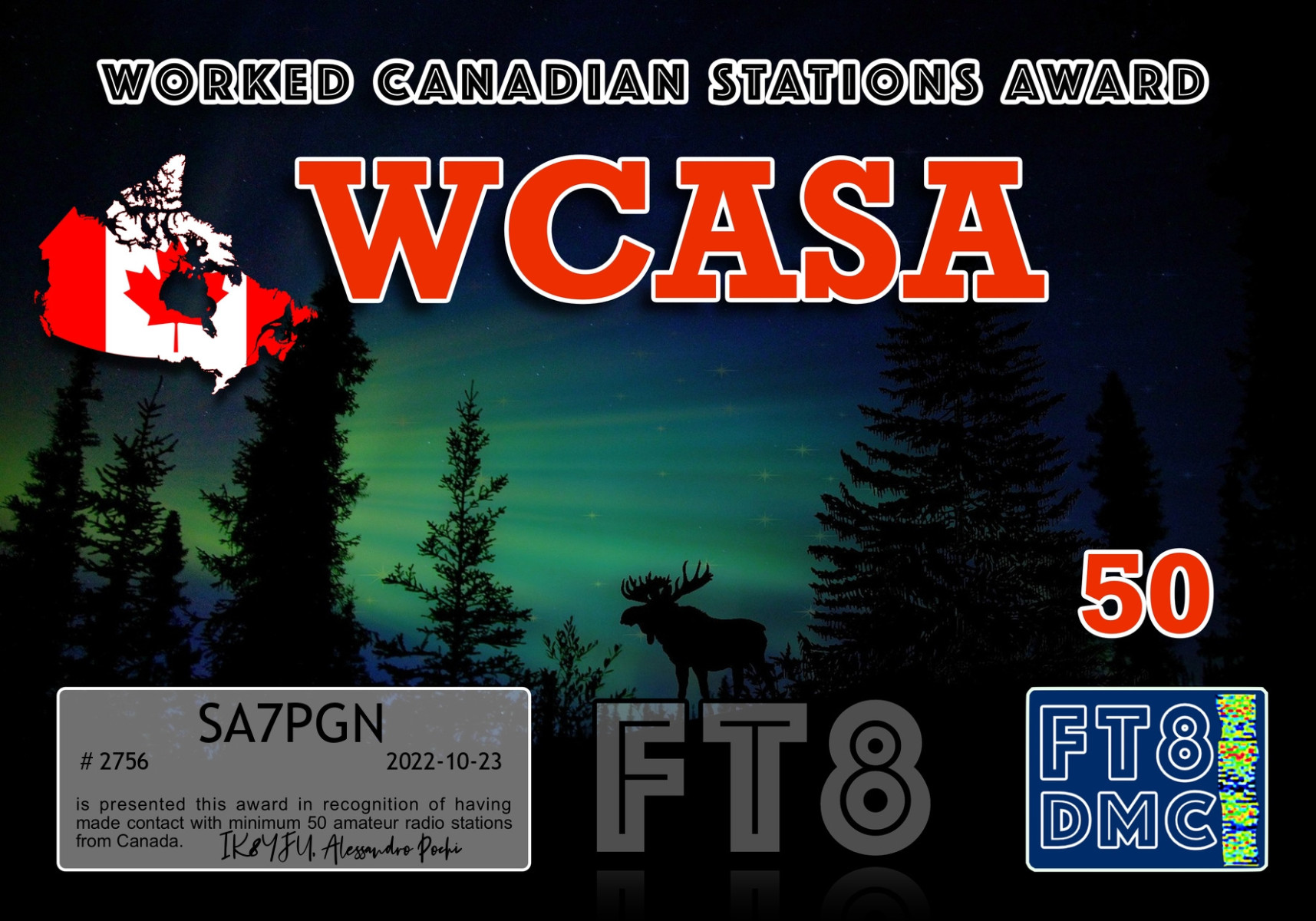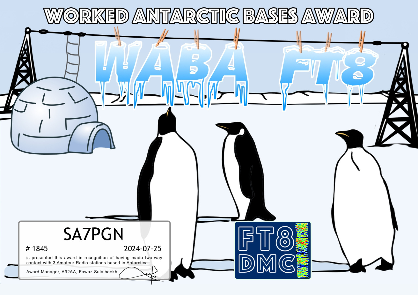 FT8DMC ger kostnadsfritt ut diplom för kontakter mellan radioamatörer och det finns idag ca 200 olika diplom.