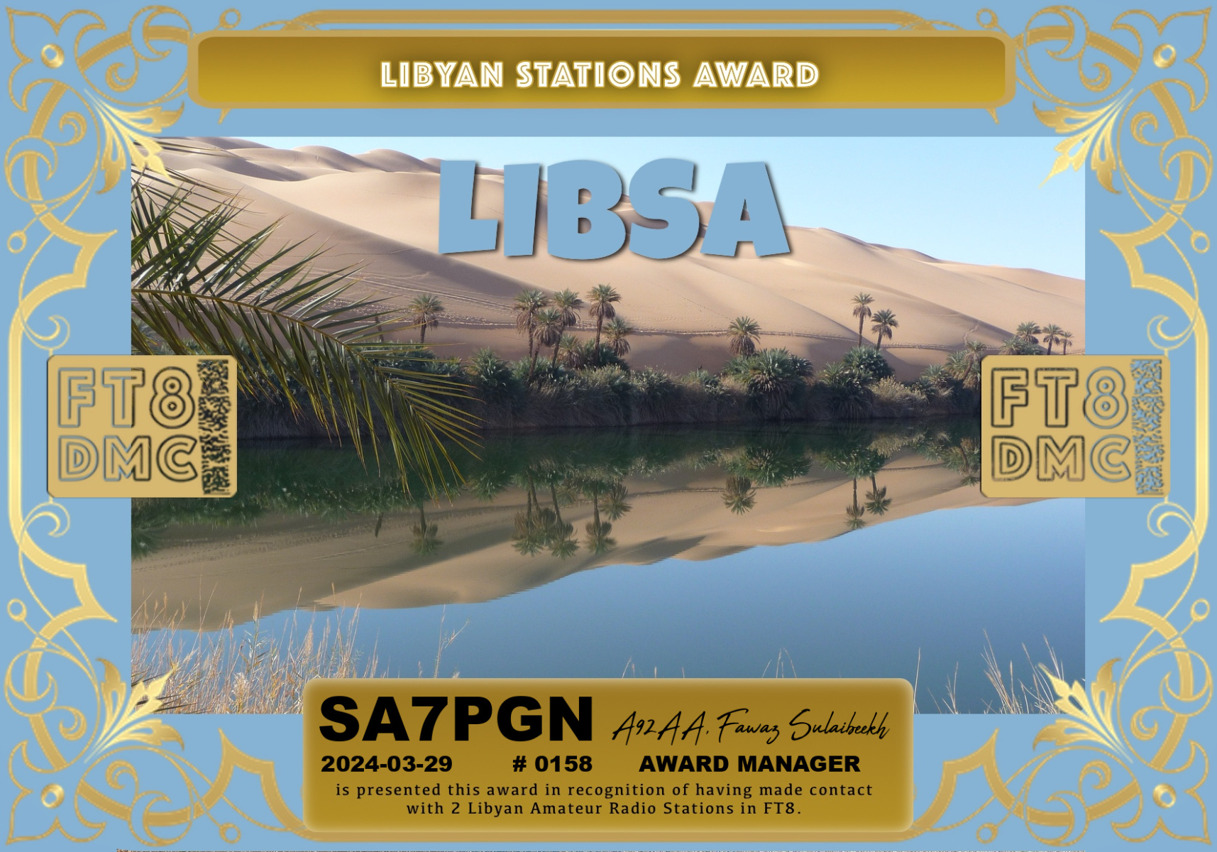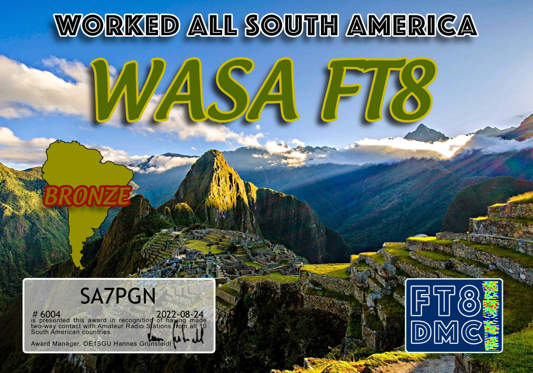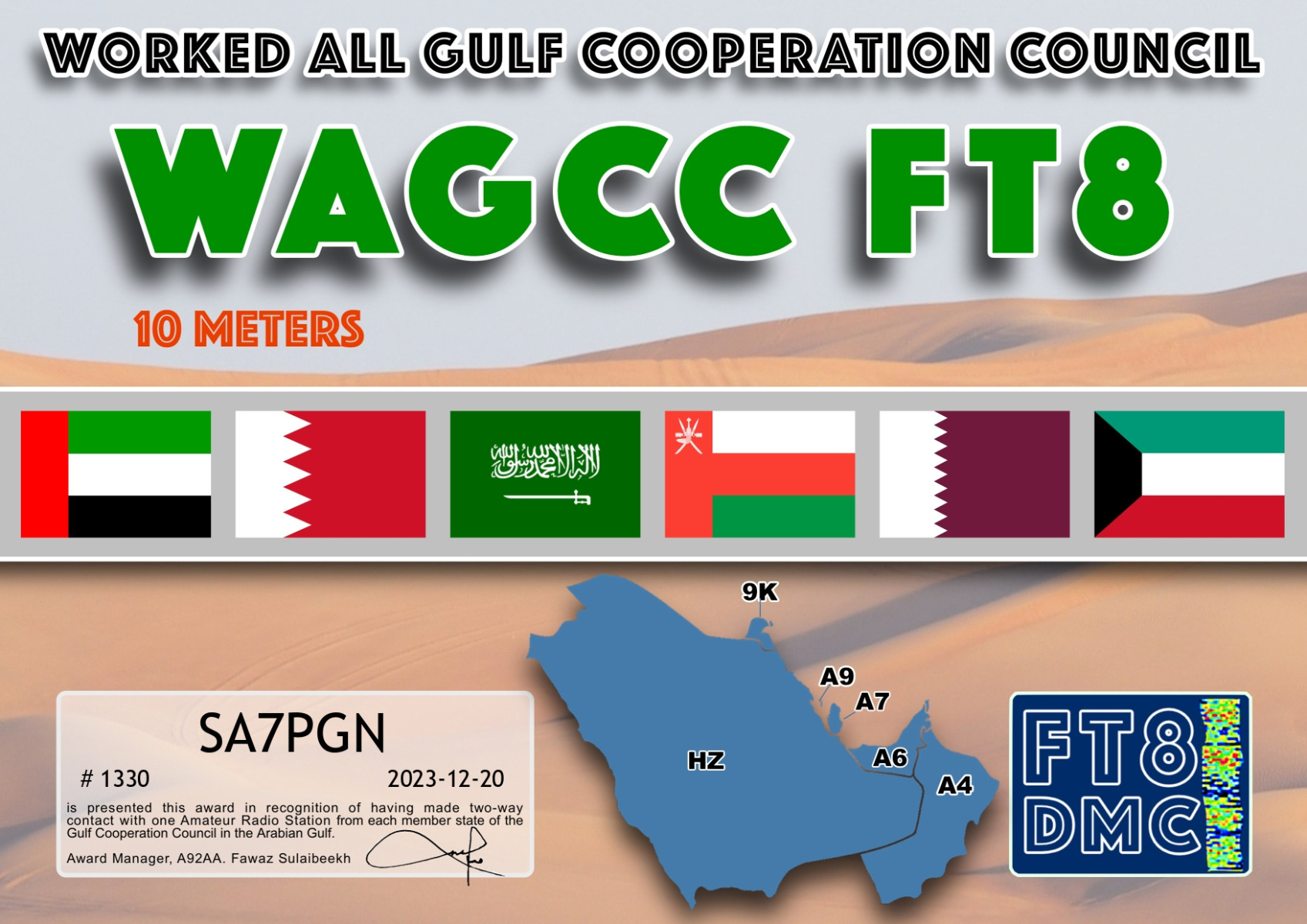 FT8DMC ger kostnadsfritt ut diplom för kontakter mellan radioamatörer och det finns idag ca 200 olika diplom.