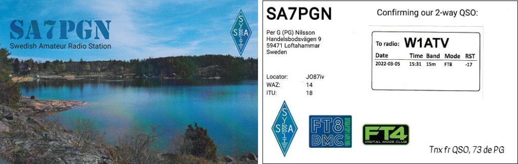Traditionellt har radioamatörer använt tryckta kort i vykortsformat, och många skickar fortfarande sådana. Men det har blivit vanligare med elektroniska QSL-kort, som då utbyts via eQSL.cc. Det är denna tjänst jag använder mig av när jag skickar och tar emot QSL-kort. Bekräftelse av en kontakt (QSO) kan också ske, utan kort, t ex via QRZ.com eller LoTW (Logbook of the World). Jag har, sent omsider, erhållit ett större antal tryckta QSL-kort och därför har jag via DARC (qslshop.de) inhandlat 500 tryckta kort att skicka till dem jag får ifrån eller som bara tar ett emot QSL på detta sätt.