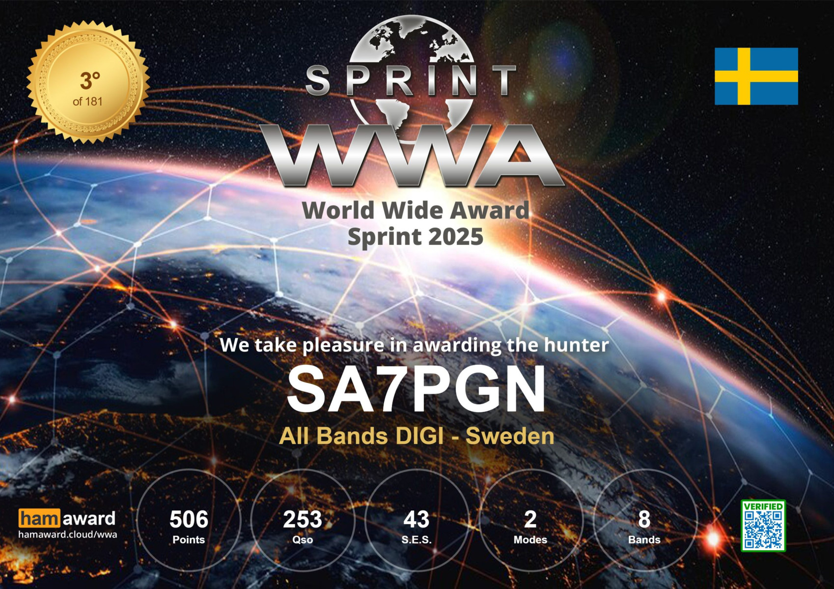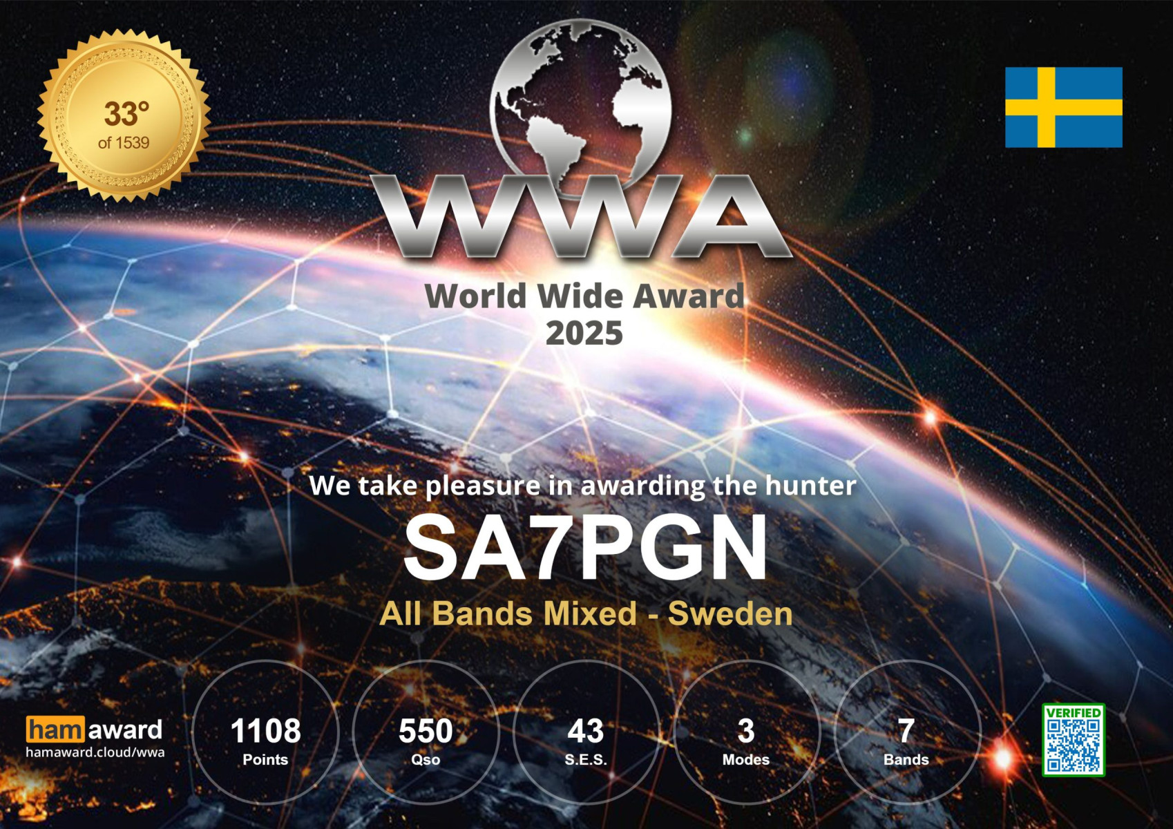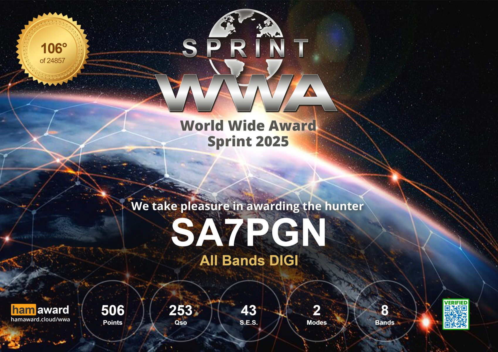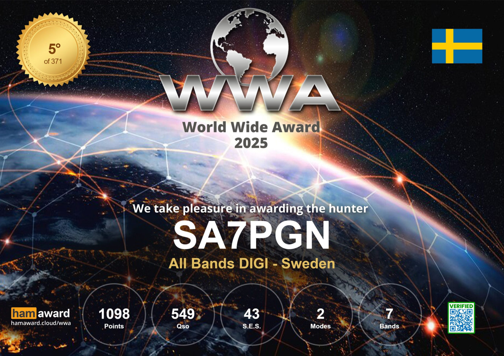 World Wide Award är det första internationella radioprojektet som syftar till att samla det största antalet länder i världen i en enda händelse, förutom de redan välkända världstävlingarna. Projektet föddes ur erfarenheten hos HamInnovation-teamet under de tre åren då de organiserade WRTC 2022, och är nu världens ledande radioevenemang när det gäller antalet QSO-anrop och aktivatorer. WWA har vuxit kontinuerligt sedan den första upplagan i januari 2024, och efter dess stora framgång beslutades det att organisera en snabbare upplaga, ”Sprint World Wide Award”, i juli. WWA ger ut ett diplom till sponsorer;